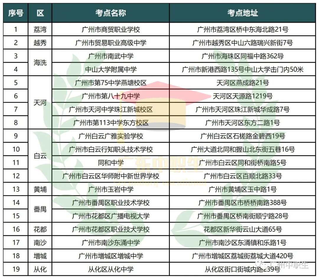 广州市2021年3+证书考试考点一览表!你被分配到哪个考场?