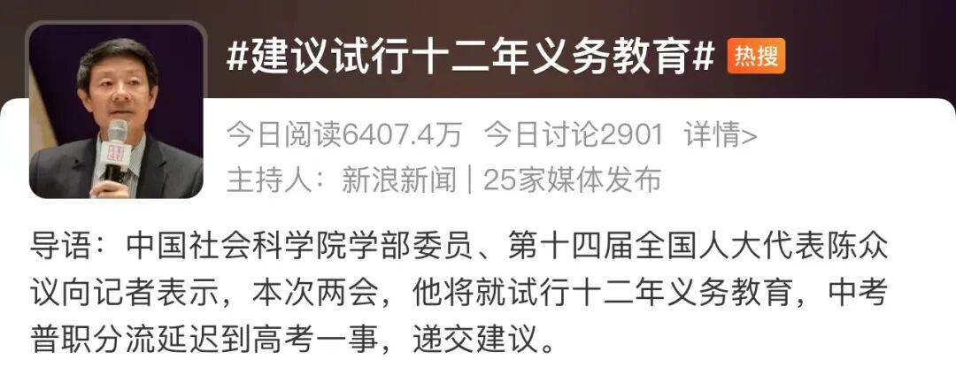 推迟“普职分流”到高考,12年义务教育!两会提案上热搜!
