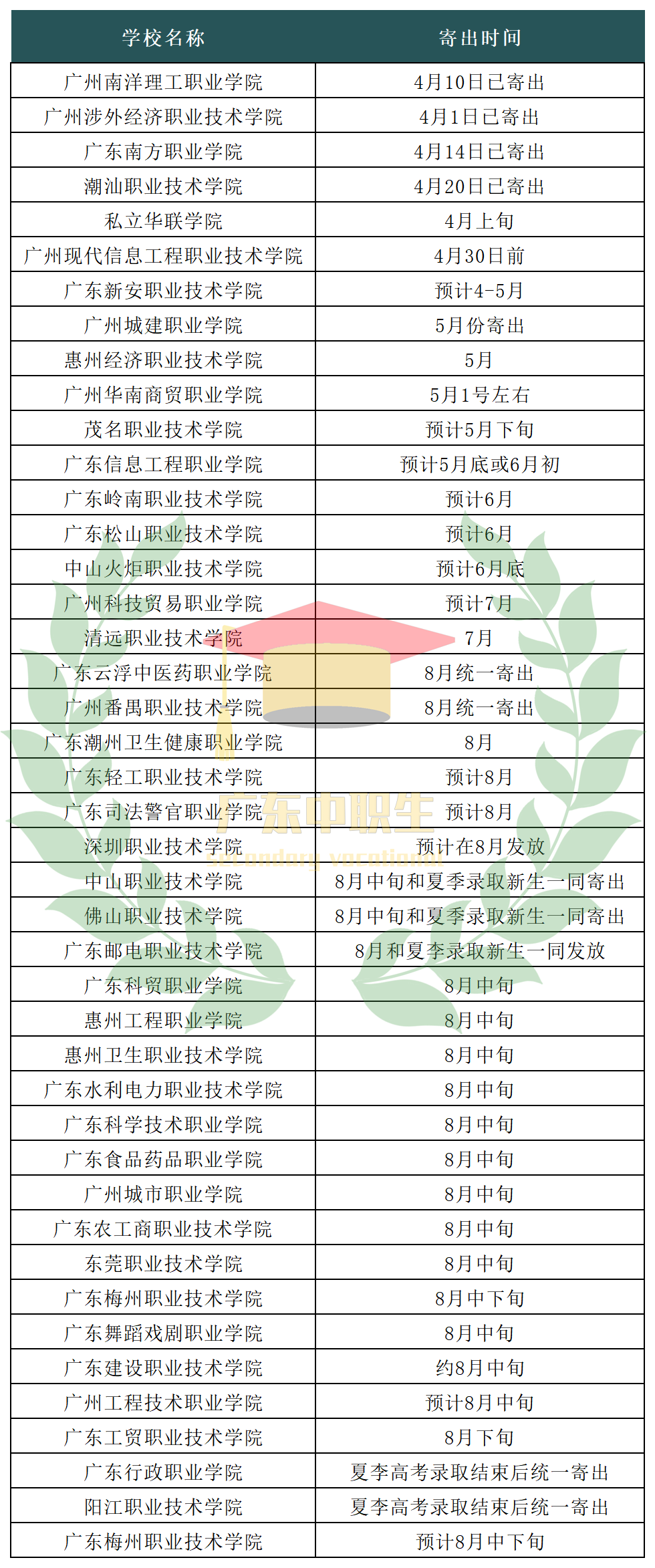 由于不同学校录取通知书发放时间不一