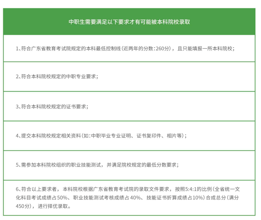 填报本科志愿→材料审核→通过技能测试→综合分→录取