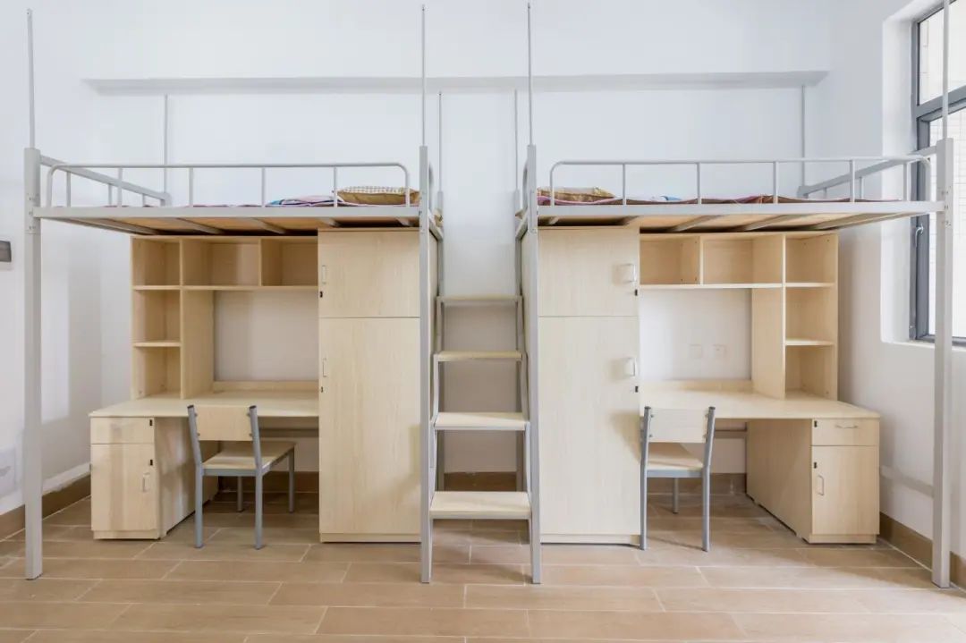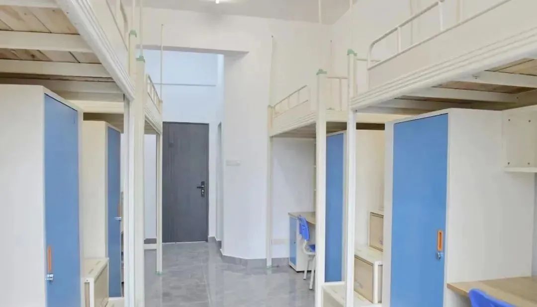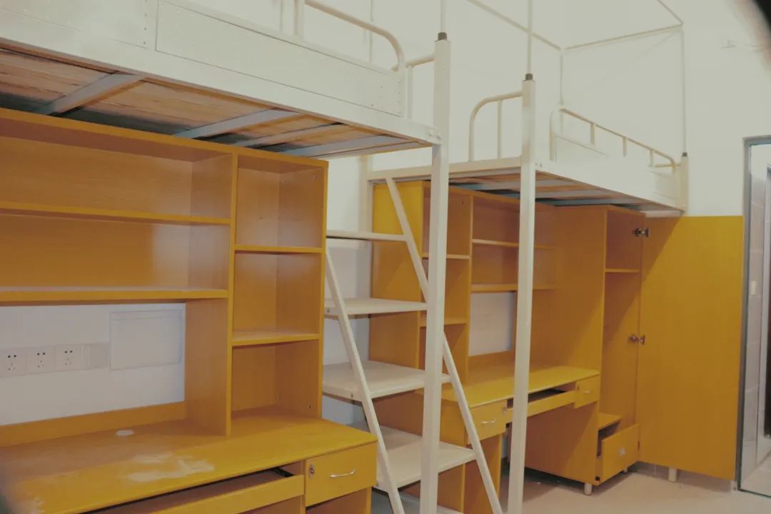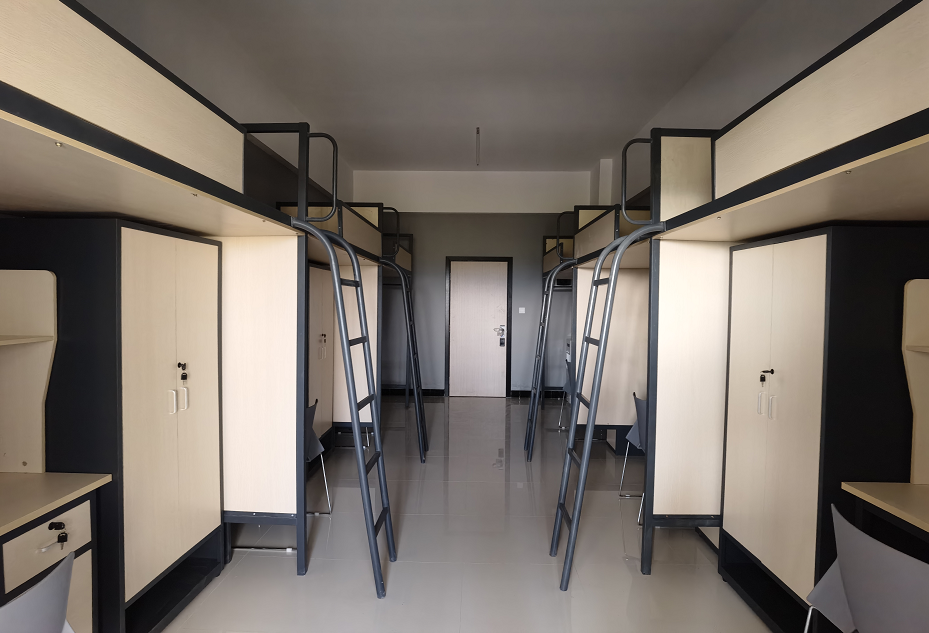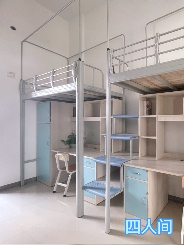 宿舍内为上床下桌四人寝,舒适的生活空间,多层次储物空间。