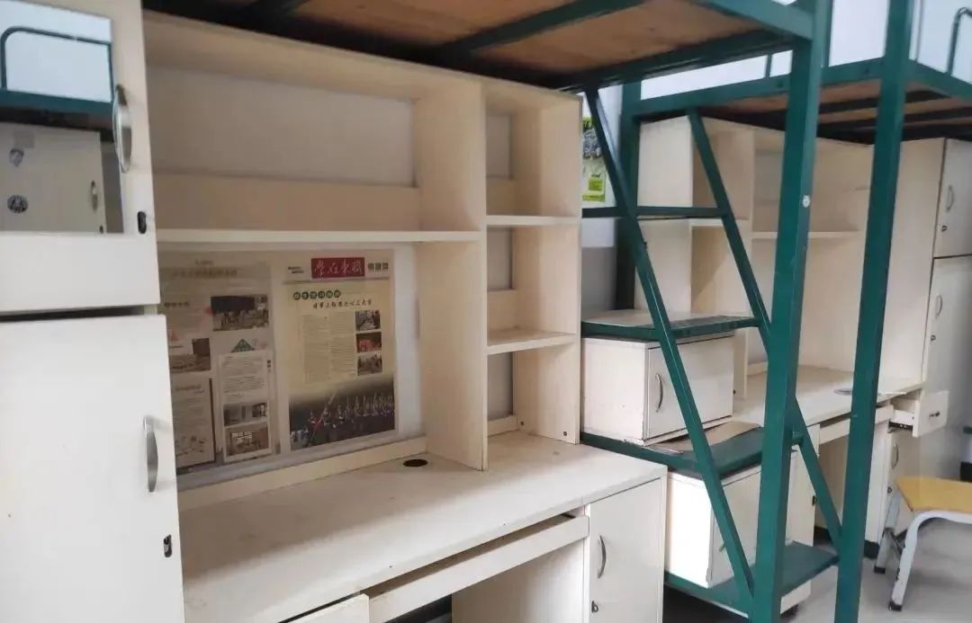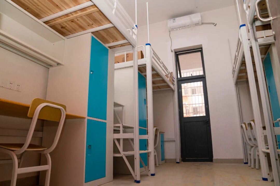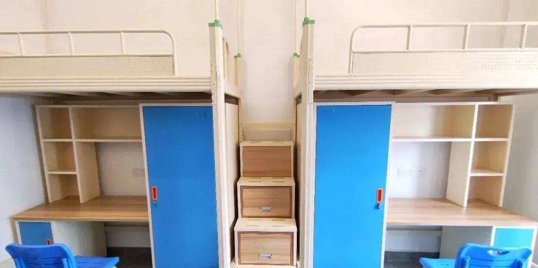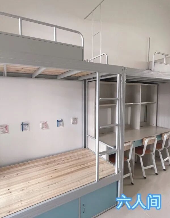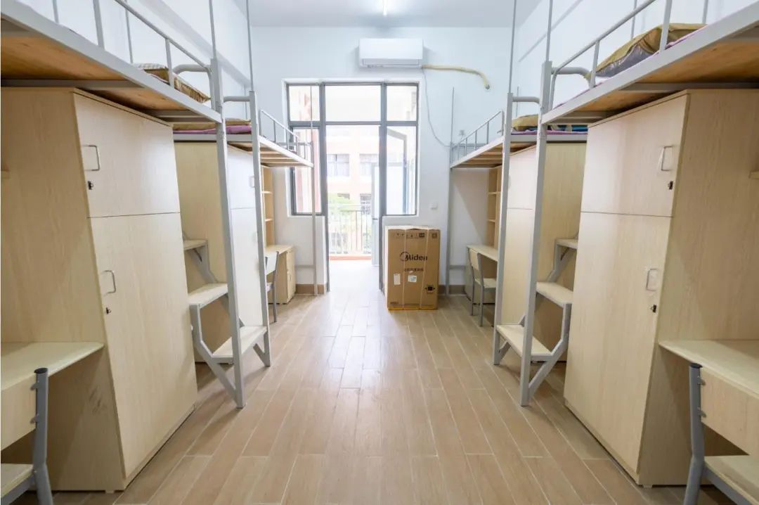宿舍内为上床下桌四人寝,舒适的生活空间,多层次储物空间。