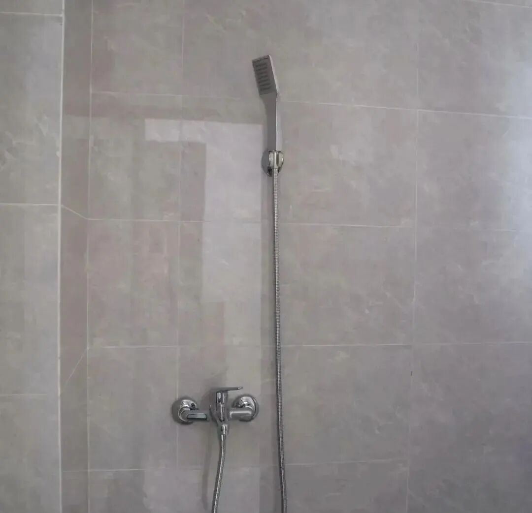 洗手间,配备一体式吹风机,具有隔层的镜柜,干湿分离的布局。