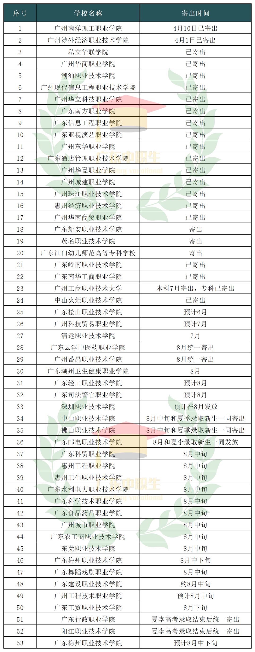 近期两校通知录取通知书寄发时间及录取通知书地址更正