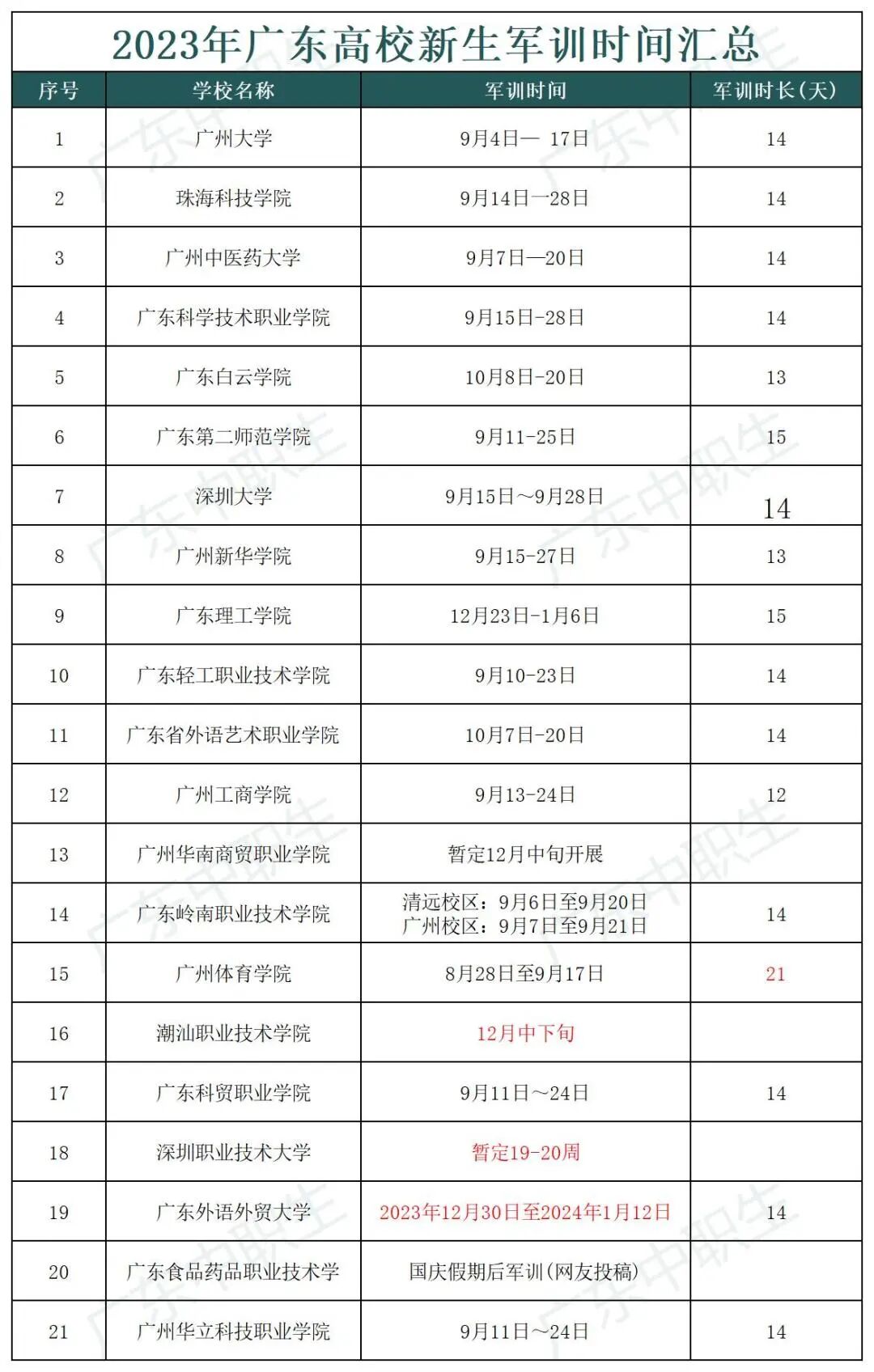 破大防!有冬训or夏训,为什么还有不用军训!广东大学军训时长or开学时间汇总!