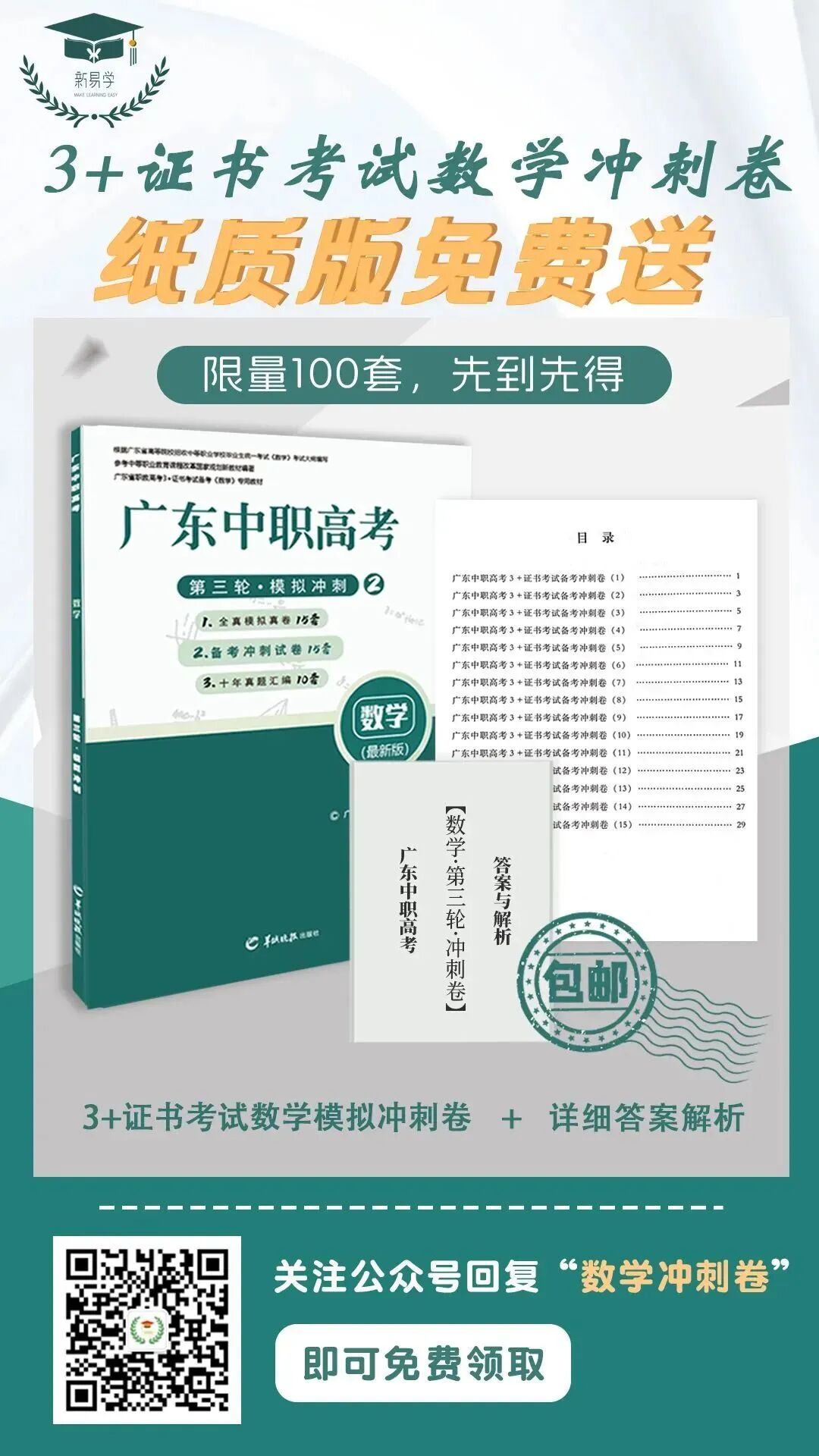 15套数学冲刺卷 附赠详细的答案解析 限量 100 份包邮到家 扫码回复即可免费领取