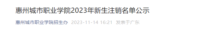331人!惠州城市职业学院2023年新生注销名单公示
