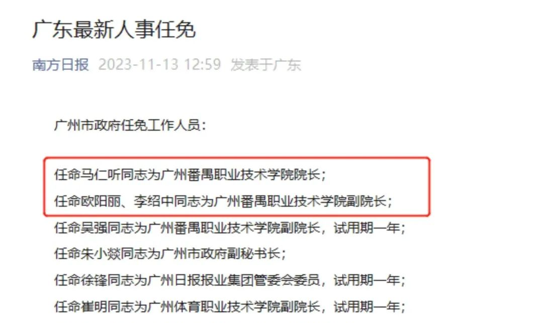 广州市政府最新人事任免情况公布:广州番禺职业技术学院(简称“番职”,下同)迎来新院长!