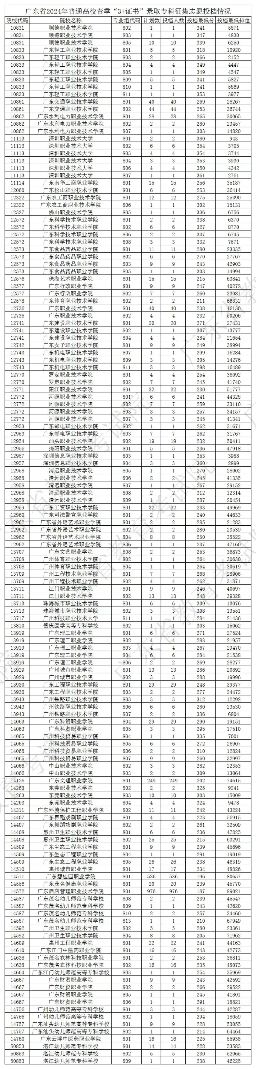 2024年广东“3+证书”征集志愿(补录)分数线“3+证书”征集志愿资格线为: