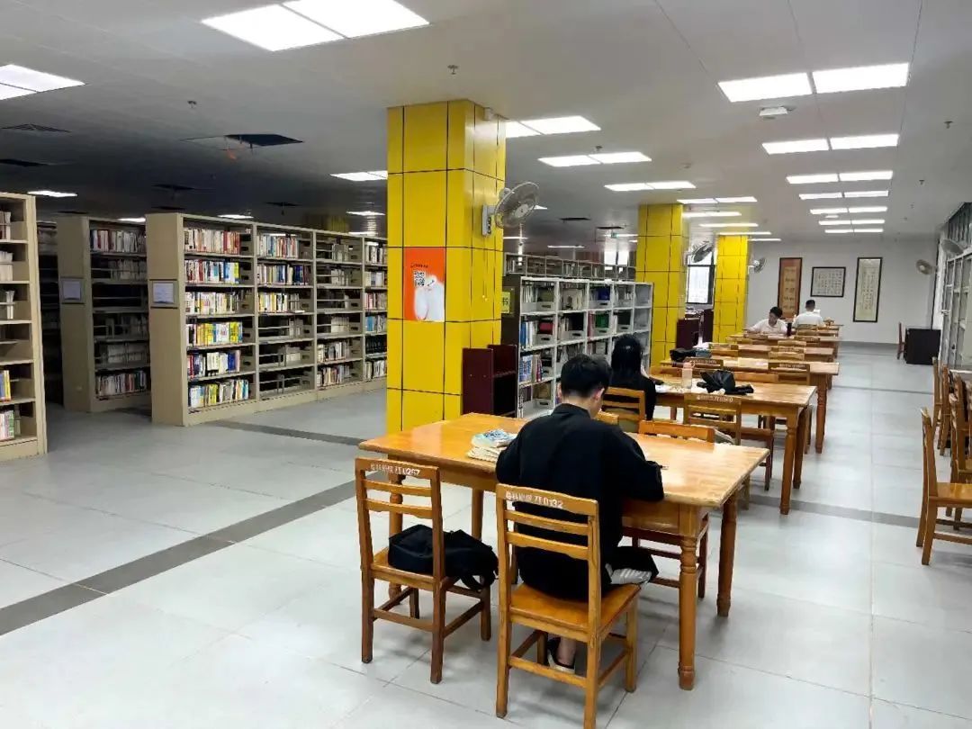 南城校区图书馆建筑面积2.36万平方米,设有社会科学、自然科学、英语语言专题书库、计算机专题书库等七个大型书库,期刊、报纸、工具书、电子阅览室、新书阅览室等七个功能各异的阅览室,680座的大型学术报告厅一个,共拥有阅览座位1866个。