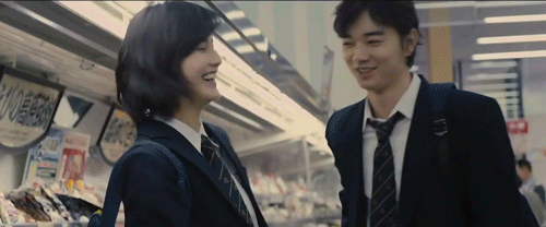上课不经意扭头看看他 相视一笑